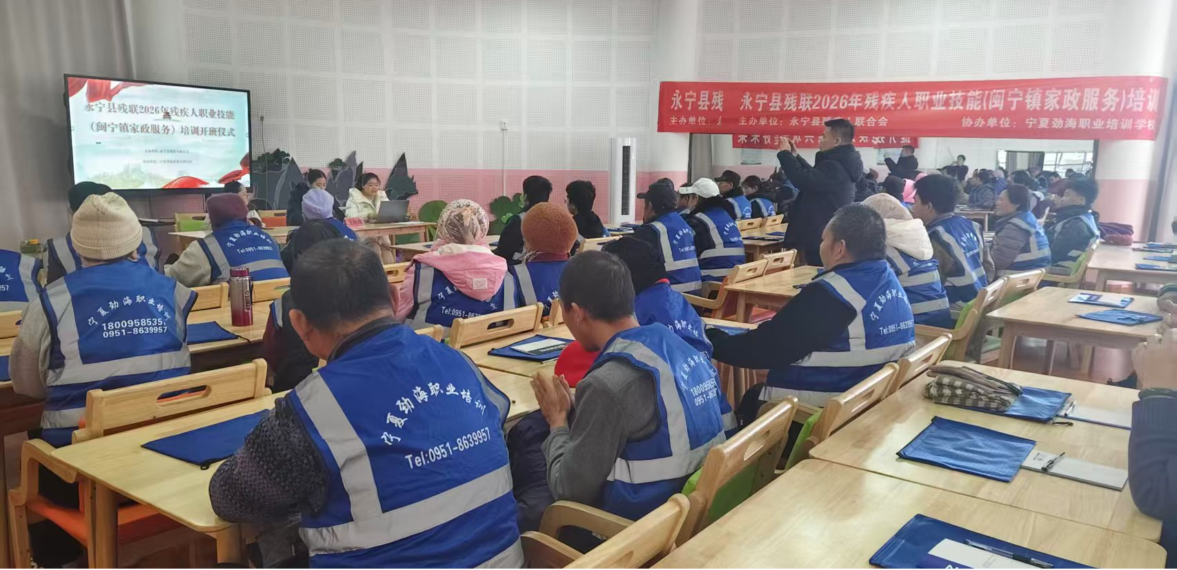 新春走基层,关怀技能送到家,1月12日,永宁县残联正式启动2026年闽宁镇残疾人专场家政服务培训班,57人名残疾人齐聚一堂,在新春佳节来临之际,开启技能赋能、增收致富的新征程。